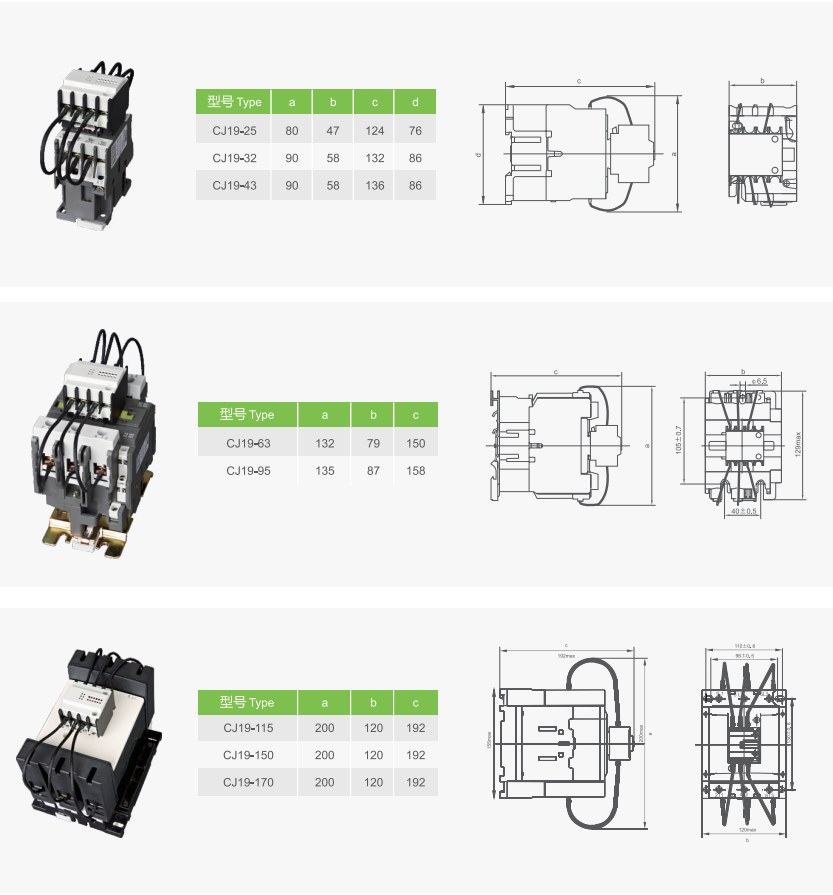 | CJ19-25 | CJ19-32 | CJ19-43 | CJ19-63 | CJ19-95 | CJ19-115 | CJ19-150 | CJ19-170 | ||