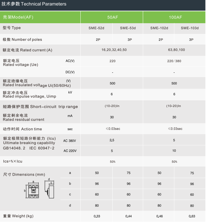 SMM/SME系列微型断路器适用于交流50/60Hz,额定电压230V~460V,额定电流至100A的线路中作过载保护、漏电保护和短路保护用,正常情况下可作为线路的不频繁操作转换,也可断开线路进行线路及设备维修的隔离开关使用。此系列断路器适用于工业、商业和民用住宅等各种场所。