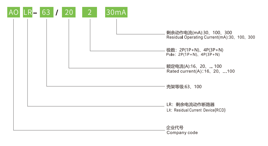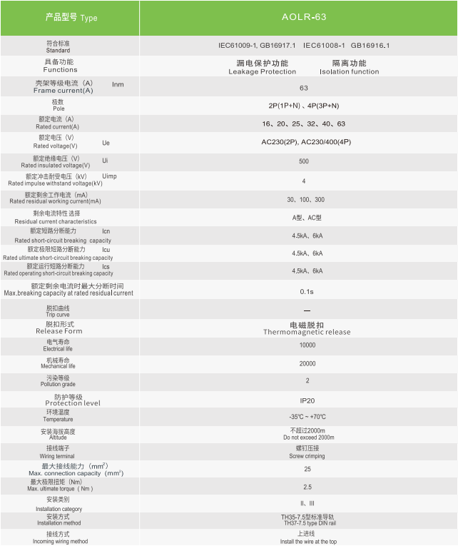 AOLR-63 2P(1P+N) 剩余电流动作断路器(电磁式)