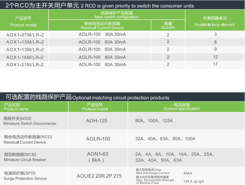 AOX1-□M/LR-2 2个RCD为主开关用户单元