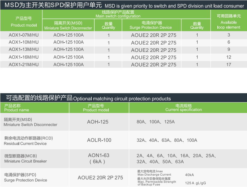 AOX1-□M/HU MSD为主开关和SPD保护用户单元