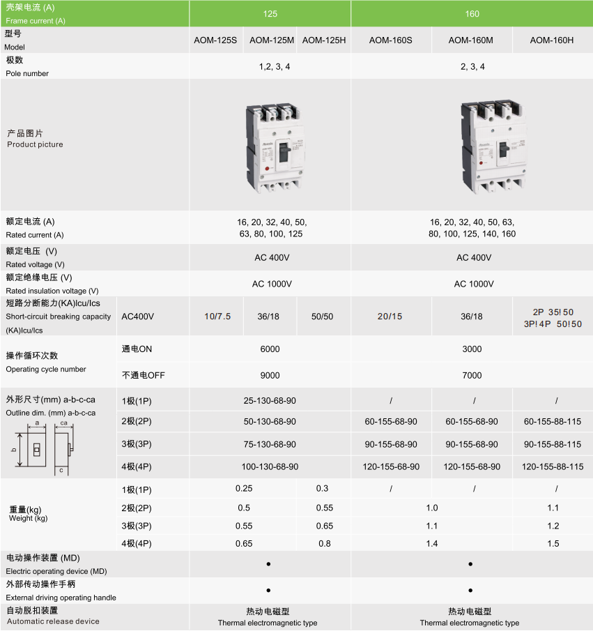 AOM,AOML,AOMR, AOME,AOMA系列断路器,是本公司结合国际同类产品的优点和国内外市场的需求研制开发的新型升级版断路器。