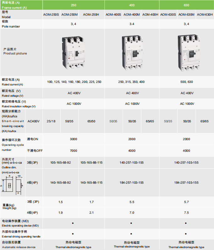 AOM,AOML,AOMR, AOME,AOMA系列断路器,是本公司结合国际同类产品的优点和国内外市场的需求研制开发的新型升级版断路器。