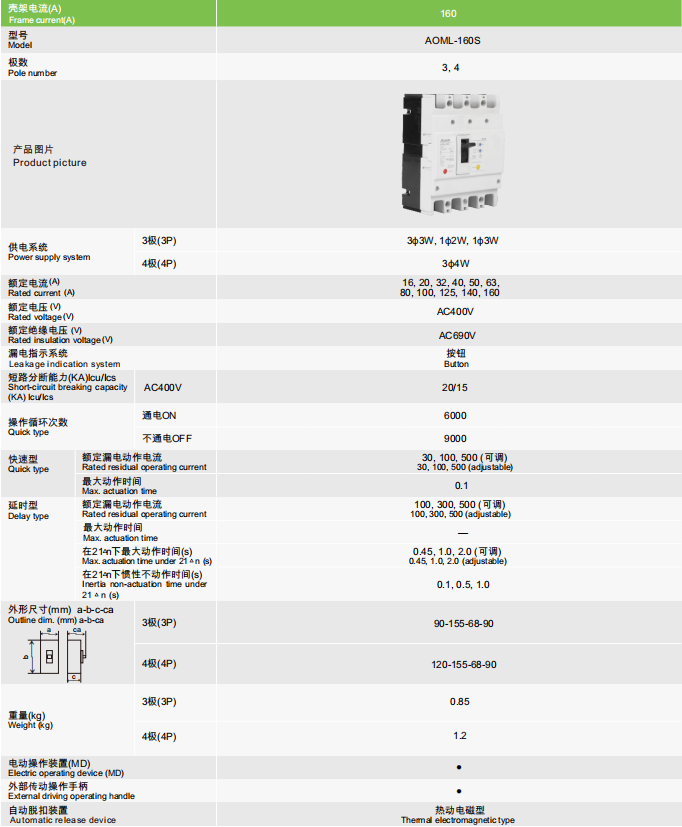 AOML-160-3P/4P 漏电断路器