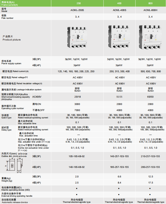 AOML-800-3P4P 漏电断路器