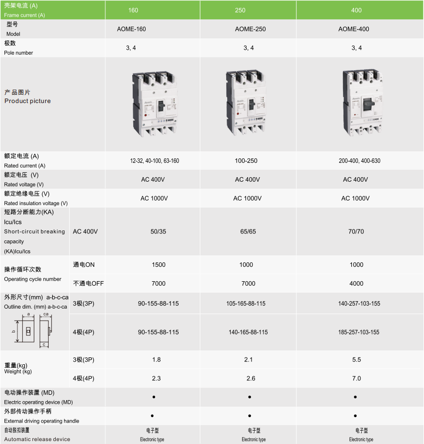 AOME-160-3P4P 智能电子可调断路器