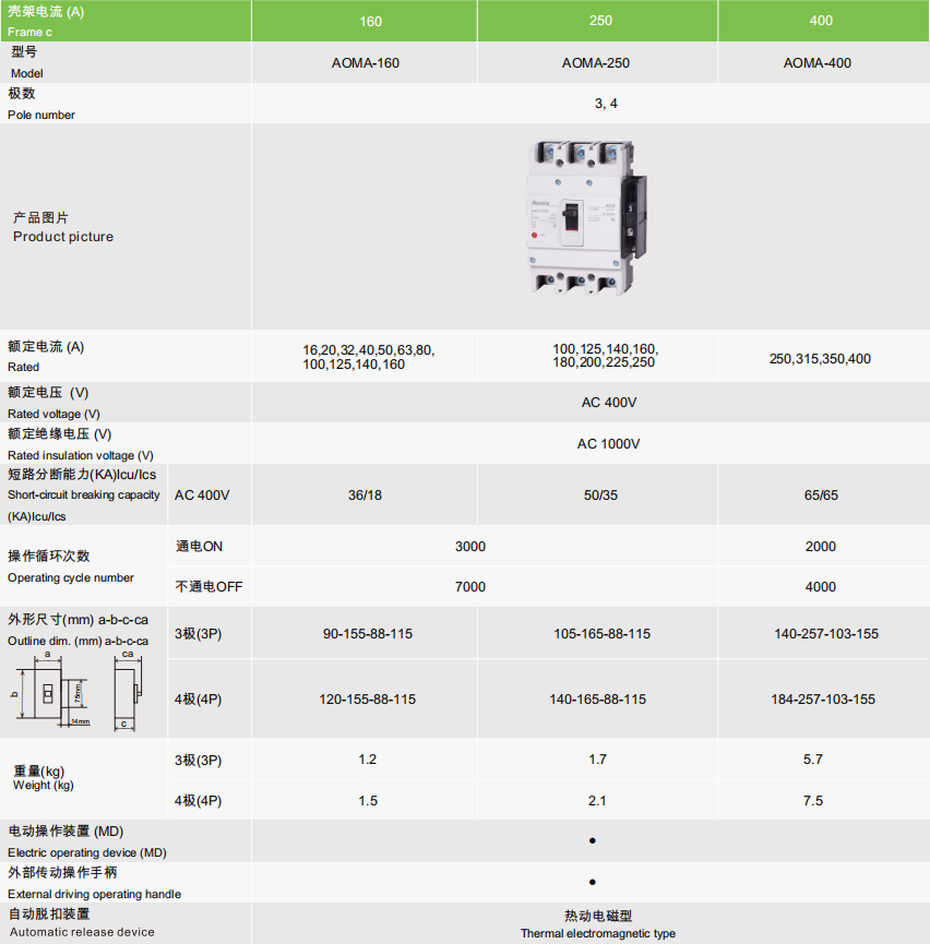 AOMA-160-3P4P 热过载报警不动作断路器